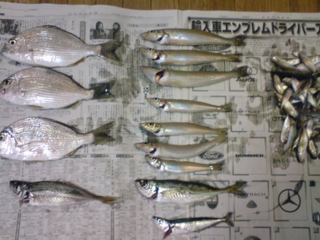 最終的な釣果は以下の通り(ヘダイは40匹以上、ボラ7匹リリース)
