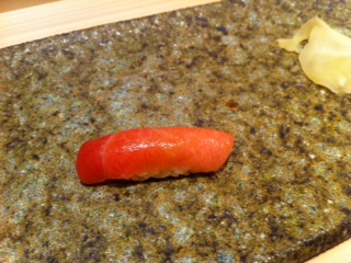 特徴的なのは30代前半の若い大将一人でやっているのと、鮨が小さいこと。