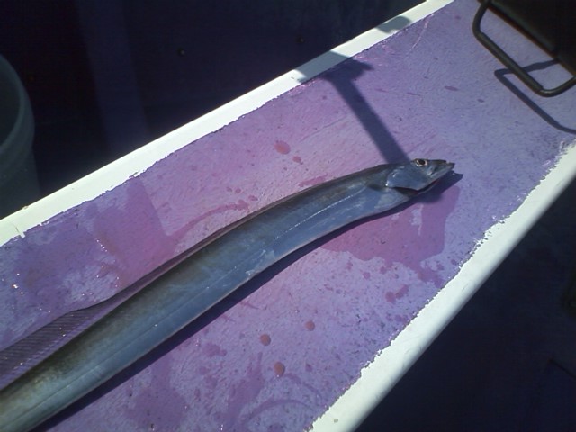 上がって来たのは綺麗な銀色が美しい指3本ちょいの幅のタチウオ。