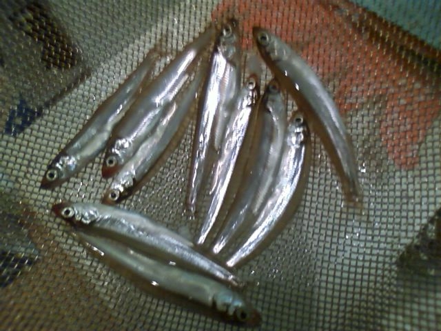選抜された精鋭2匹の稚鮎。捕まったという観点では駄目稚鮎かもしれない。。