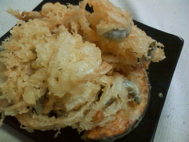 残りは夕食のおかずへ。昨日同様かき揚げに。ただ数が少ないので野菜多め。