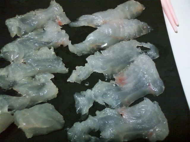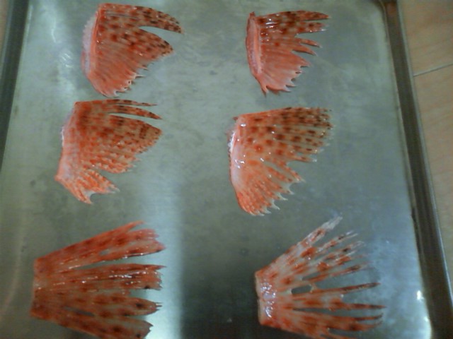 らしいので作ってみるべくヒレをバットに貼り付け乾かす。
