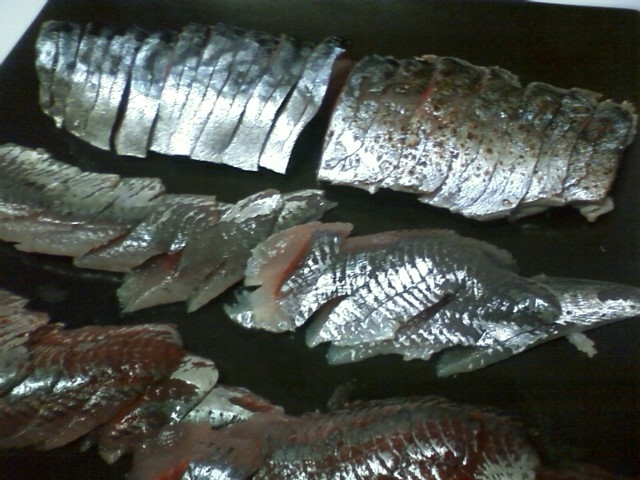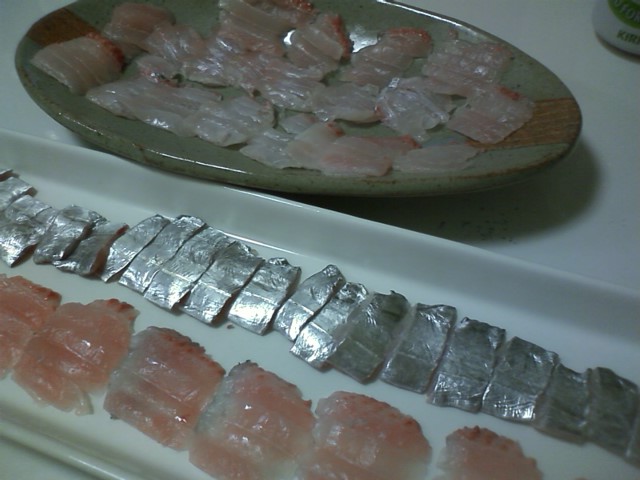 もう半分はそのまま酢〆のまま適当に切り付ける。