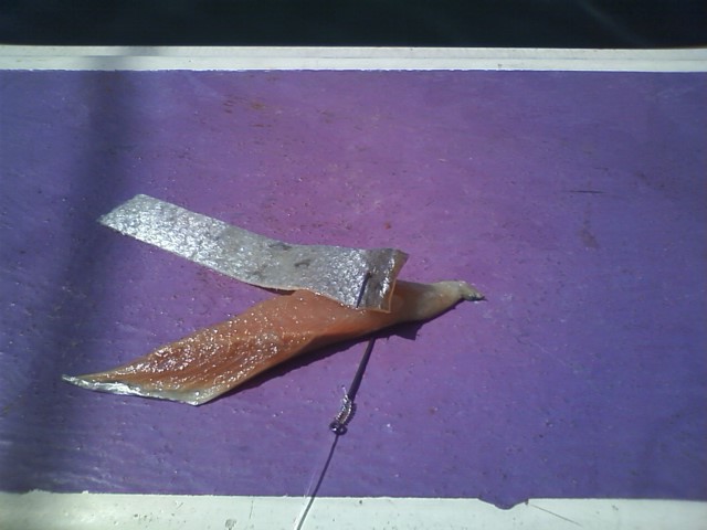 錘は120号を片手テンビンにつけエサはサンマの切り身を使用。