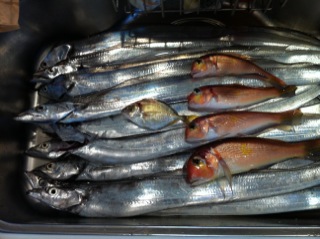 本日の釣果。太刀魚の輝きで目が痛い!
