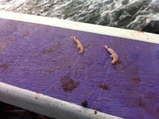 アマダイは錘80号に片手テンビンを使用した2本針。エサはオキアミ。