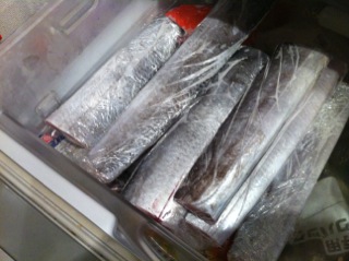 ふって室内で放置しぷち一夜干しにして冷凍庫へ。