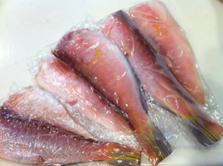 アマダイは水気の多い魚なので内臓をとって開いて塩を強めに