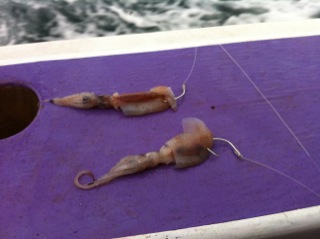 ノドグロは120号の錘を使用し4本針の胴突き仕掛けにホタルイカを