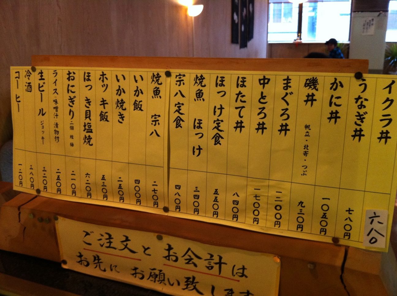 ここは魚問屋が経営している食堂で1Fが魚屋、2Fが食堂となっている。