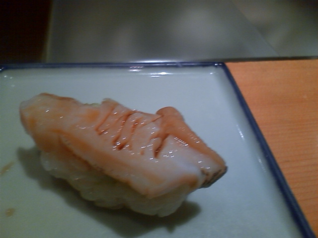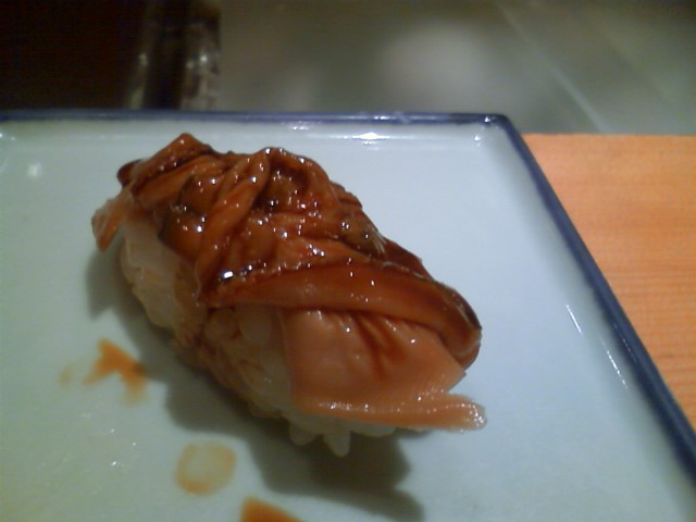 アワビの肝ソースが合う。しかし残酷だ・・。
