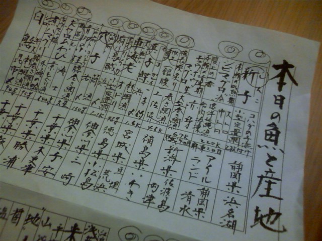 席には必ずその日仕入れたお勧め品が書いた紙が置いてある。