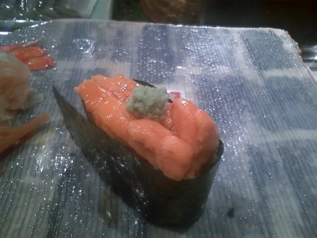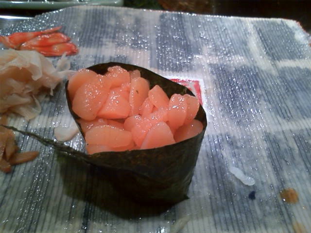 その場で浅葱と中トロを叩いてつくってくれる。めちゃ旨い。